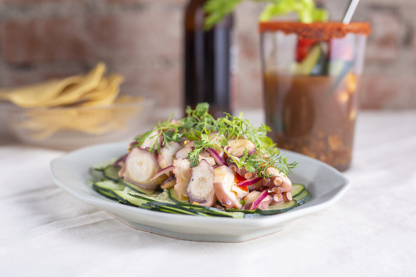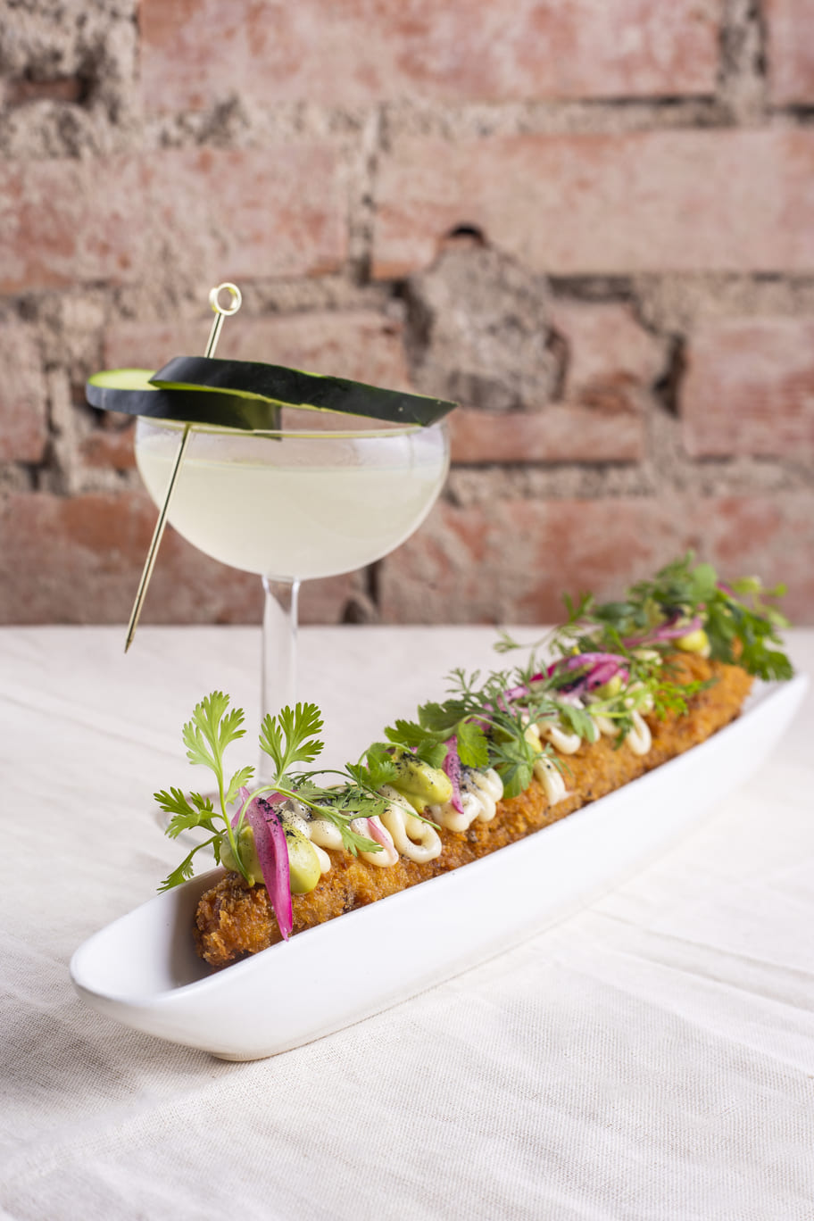 En la barra Joseph, hace lo propio y sirve bebidas refrescantes con acentos de las costas mexicanas. Así podrás tomar una caguama, un vino de baja intervención de Tecate. Sin embargo, también ofrece tragos caracterizados por su simplicidad, como una cerveza combinada con jugo de tomate preparado con almeja, camarón, pepino y especias llamado Tijuana; así como La Chepa a base de mezcal con pepino, cilantro, sour mix y rim de sal.