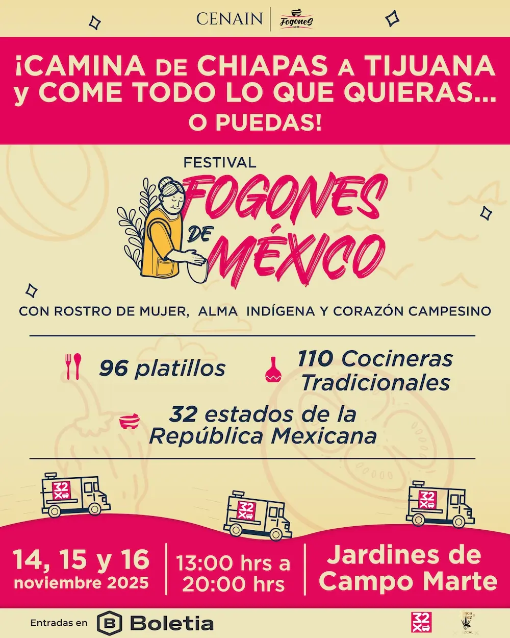 El festival se llevará a cabo del 14 al 16 de noviembre del 2025 en los Jardines de Campo Marte donde alrededor de 110 cocineros y cocineras tradicionales de 32 estados se reunirán de 13:00 a 20:00 horas para mostrar el corazón vivo de nuestra gastronomía a través de 96 platillos representativos, 32 fogonetas móviles y cuatro pabellones interactivos: Maíz, Cacao, Bebidas Ancestrales y Técnicas Culinarias.