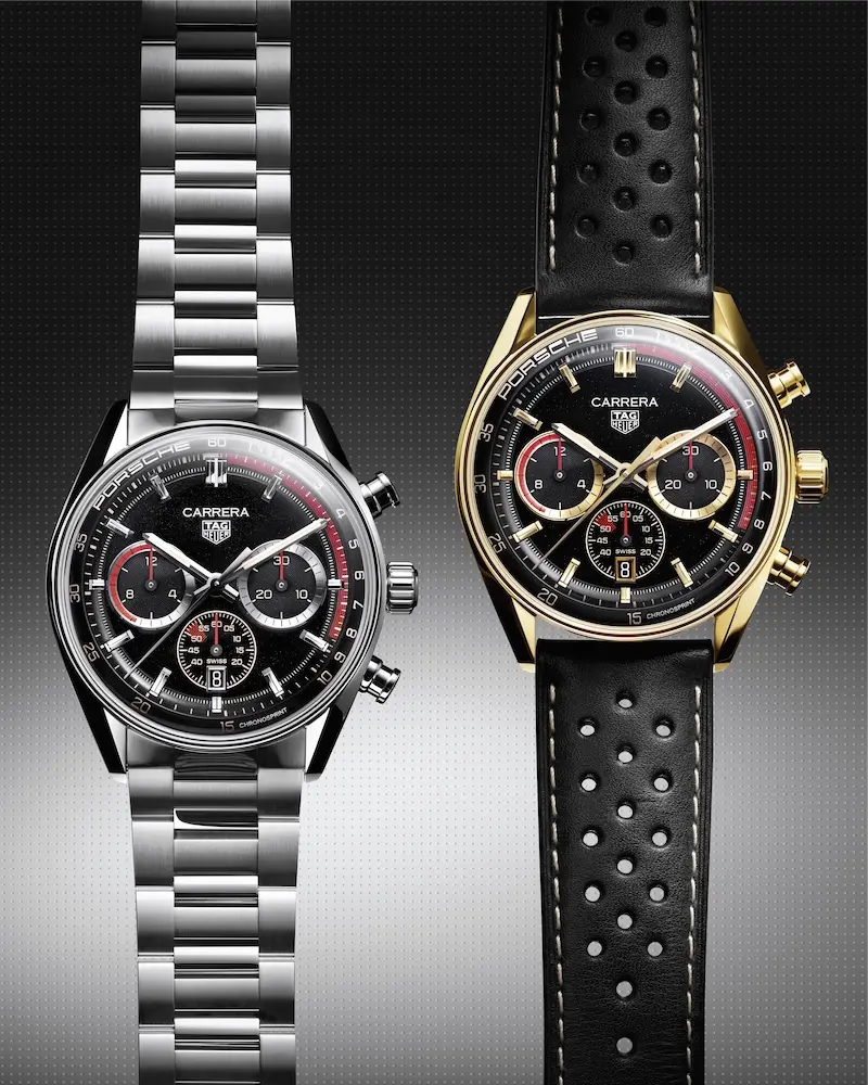 El Carrera Chronosprint x Porsche Rallye se presenta en dos versiones, cada una con su propia personalidad, pero ambas unidas por la misma pasión por la excelencia. La versión de acero inoxidable, robusta y elegante, es perfecta para aquellos que buscan un reloj para el día a día, un compañero de aventuras que les recuerde constantemente el espíritu de la competición.